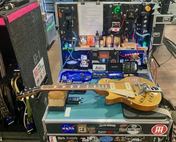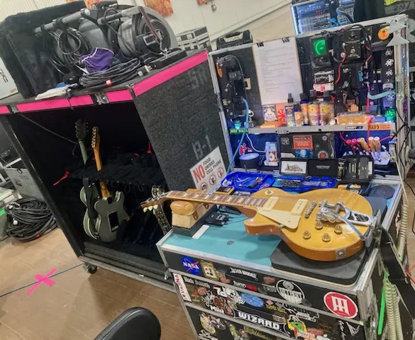 Ian started in the business as a guitar player in dirt rock bands in Toledo, OH. He moved to Phoenix, AZ, in 1995 to try my luck as a stagehand for the professional touring bands. He’s worked any manner of gigs while there, from corporate shows at the resorts, to stadium shows at the college, American football stadiums, and MLB ballparks. He loved working the shows at a local amphitheater and worked with the touring backline guys. He would watch the guitar techs and ask questions. Some of the crew was very helpful in showing him guitar & bass setup and maintenance. He got his shot at touring with Slayer. One of the guitarists lived in Phoenix, and a stagehand friend lived with him. He claims he owes all to that guitarist and my good friend Norm. After that tour, he hasn’t stopped touring for 25+ years. He loves his job and is blessed to have worked with artists of all kinds, traveling the world in the process.